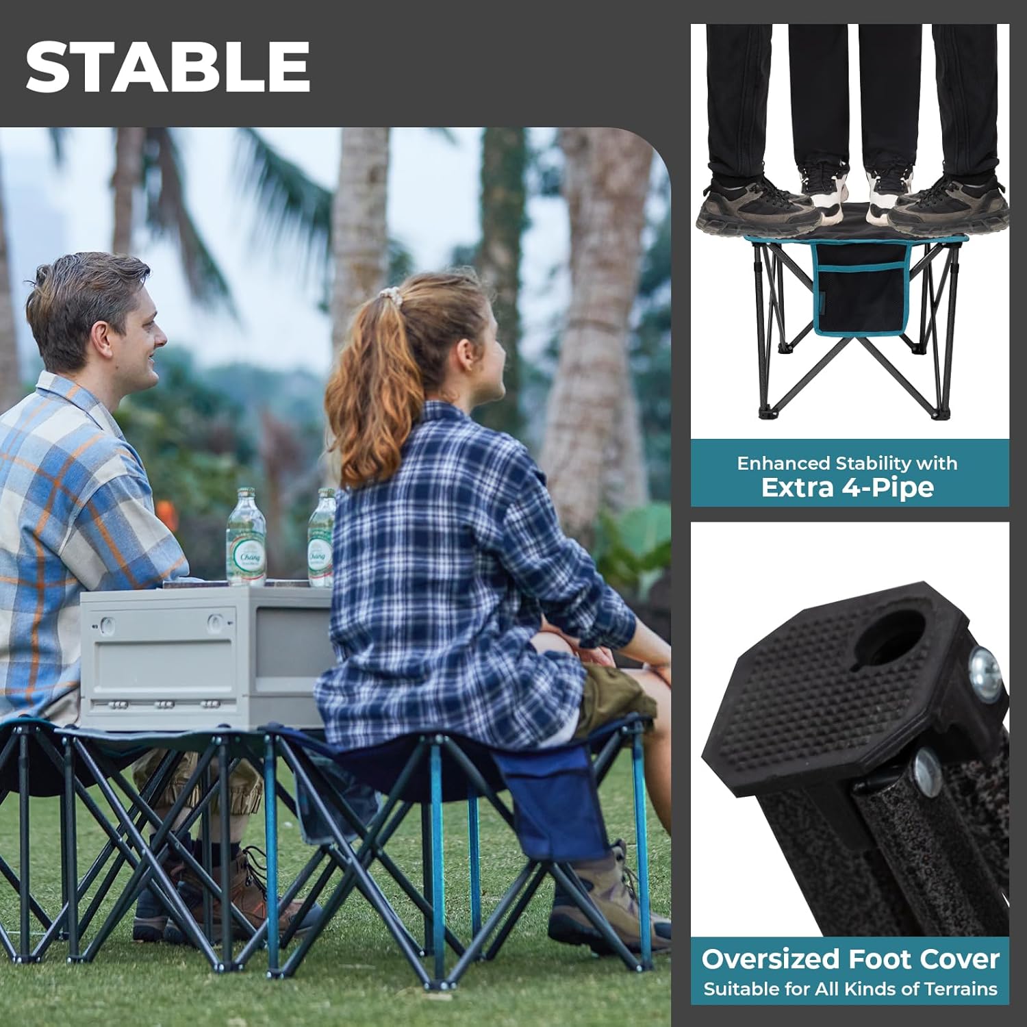 FUNDANGO Folding Camping Stool, 18.1 Inch Oversized Foot Rest 440 Lbs Heavy Duty Portable Padded Stools Seat Anti-Slip Foots & Carry Strap for Fishing Outdoor Lawn Travel (Black)