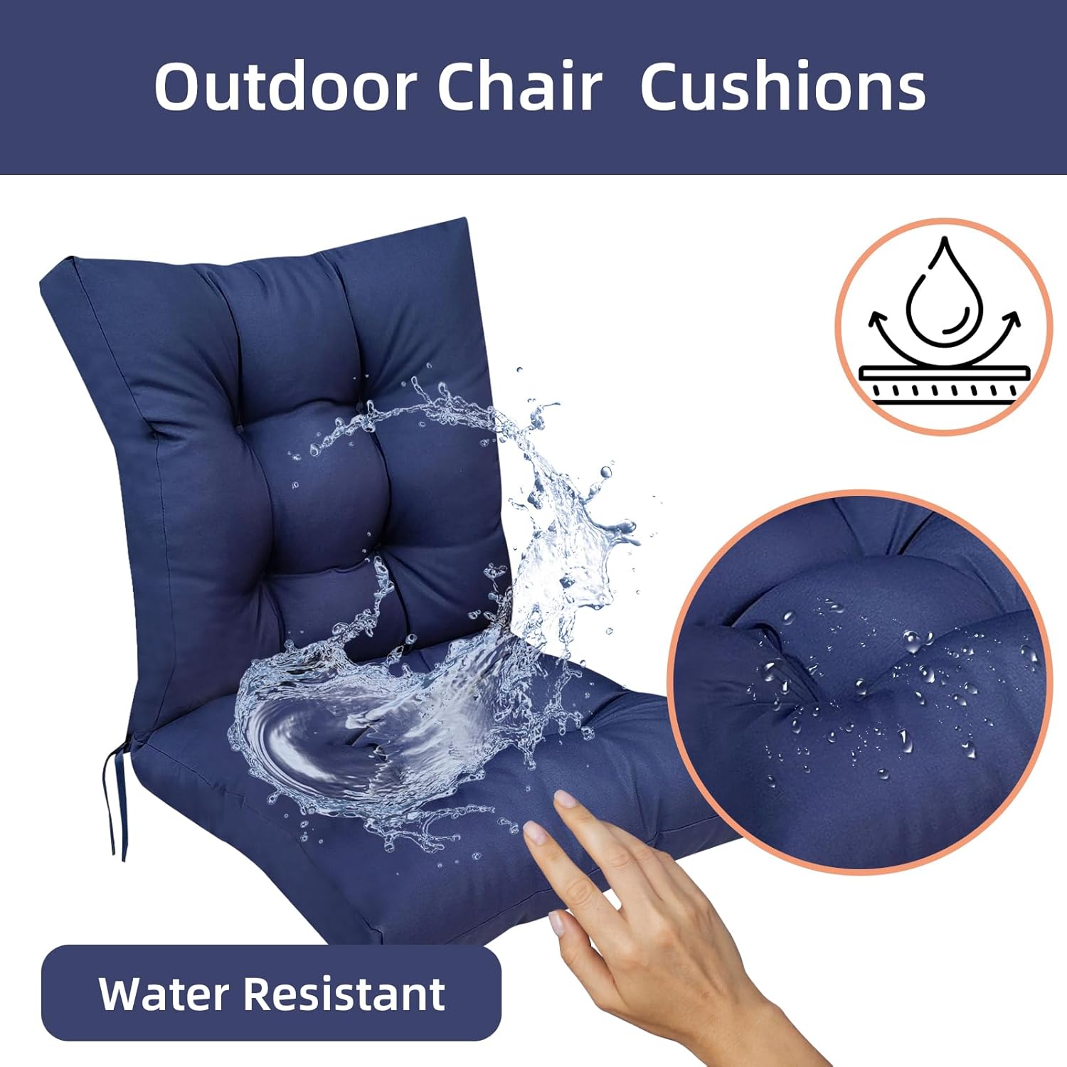 High Back Outdoor Chair Cushions Set of 2 Waterproof Replacement Seat Pad for Patio Furniture Garden Thicken Outdoor Patio Chair Cushion Navy Blue,41.7"*20.8"*3.9"