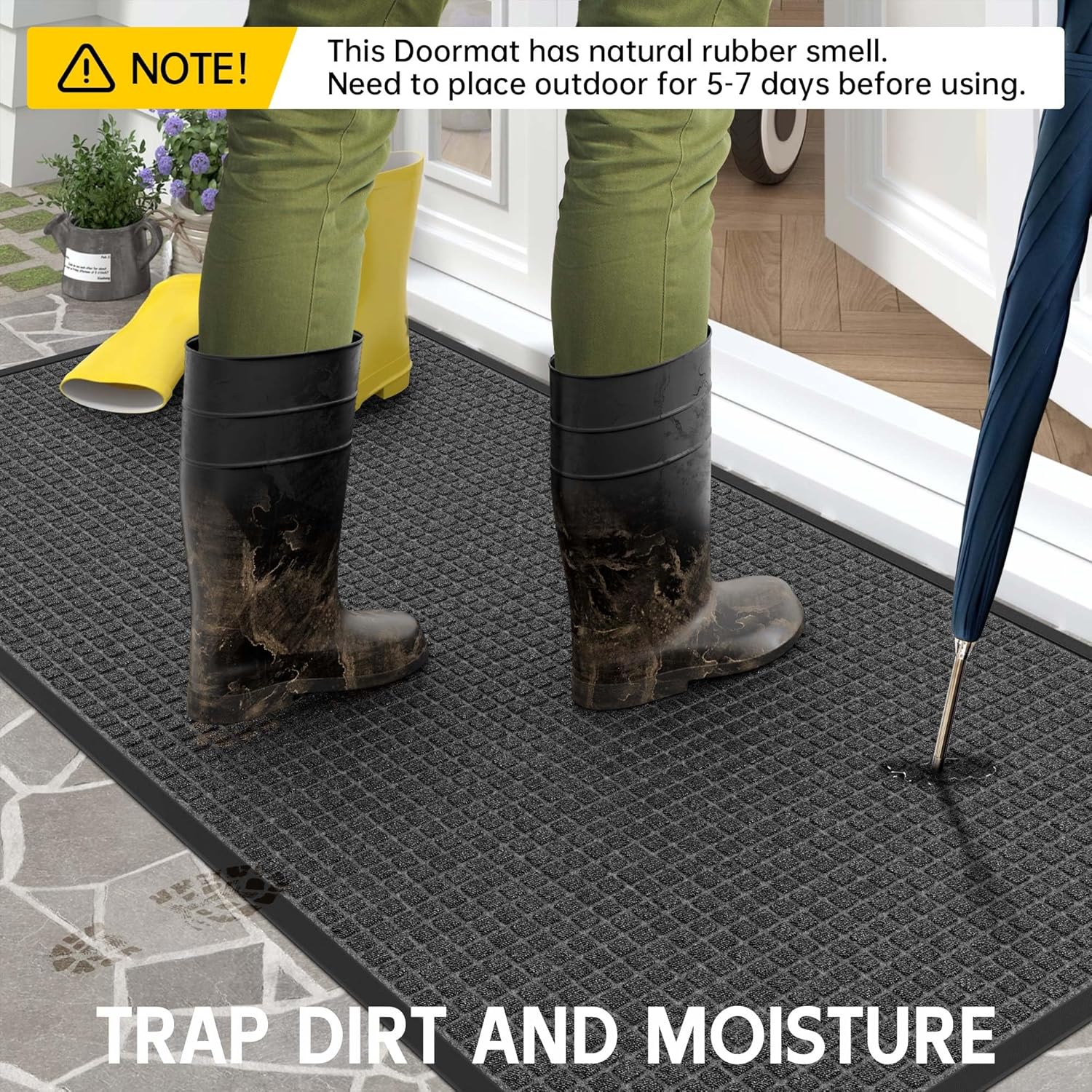 Sturdy Front Door Mat Outside Entrance, 6' x 3' All-Season All-Weather Doormat Waterproof, Stain and Fade Resistant, Natural Rubber Indoor Outdoor Welcome Door Mat Trap Dirt