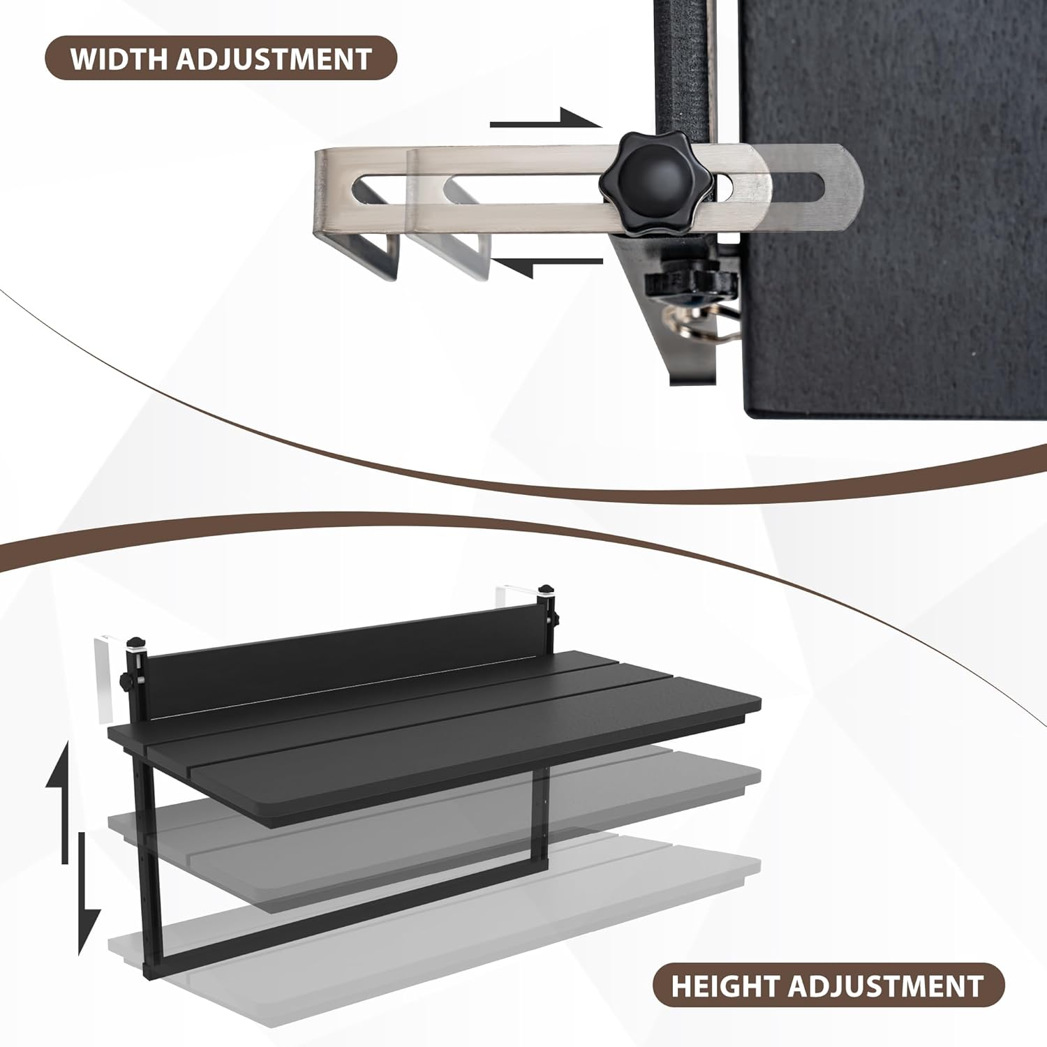 Sundale Outdoor 32" Large Folding Balcony Table for Railing, Patio HDPE Bar Adjustable Hanging Mounted Table for Baluster Garden Deck, Black